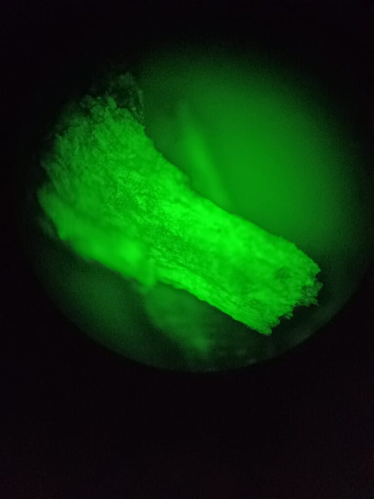 Cicadas screeched, frogs croaked, and I spotted fireflies. “Observe the trees,” my father said quietly. Minutes passed, and something like a coat of velvet on a leaf started to glow faintly—a teal green colour. In a short while, the entire tree bark was bathed in a soft green light! I was astonished to see it, and picked up a glowing branch fallen on the ground. It looked like a magical wand from a fantasy film or a lightsaber from Star Wars.